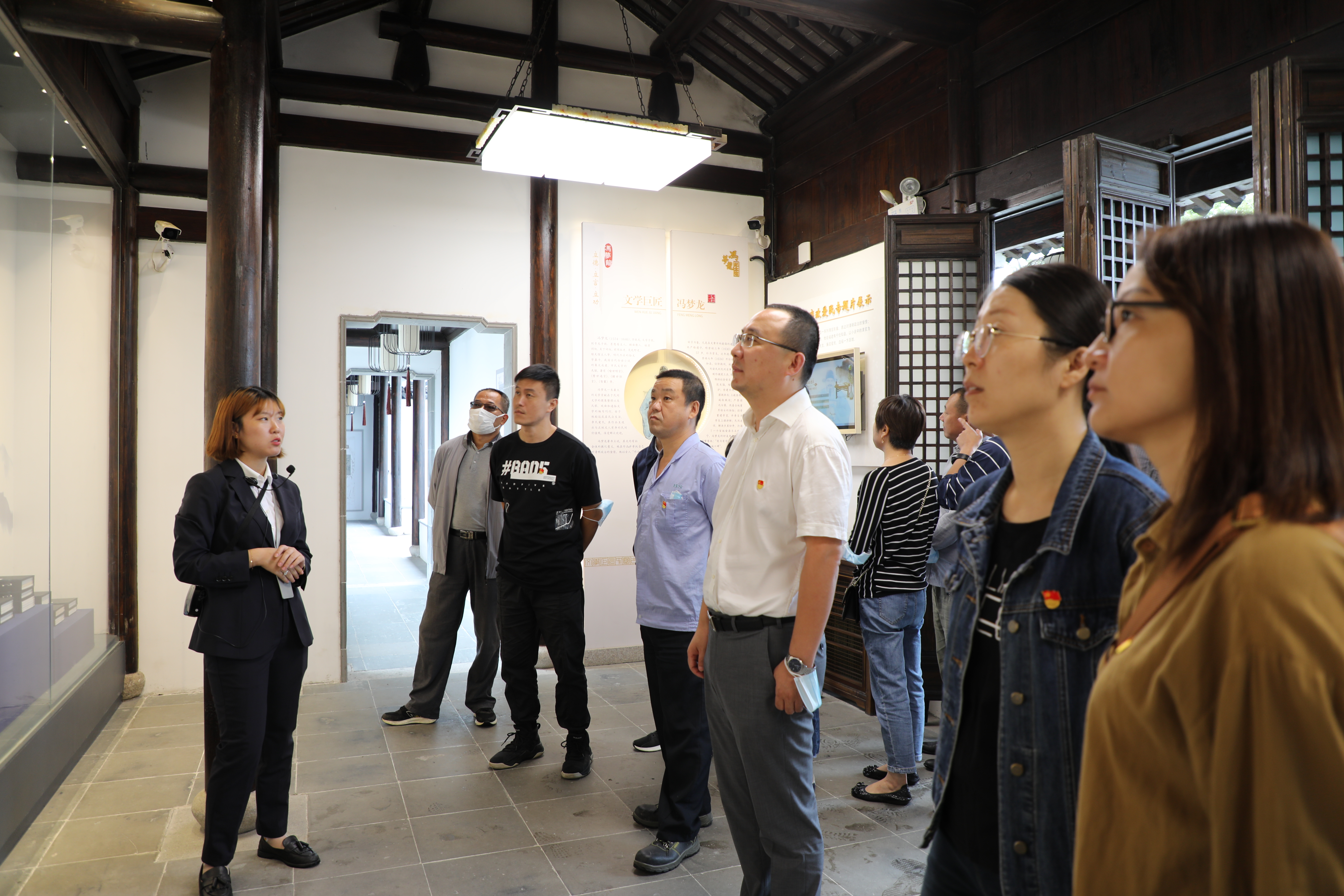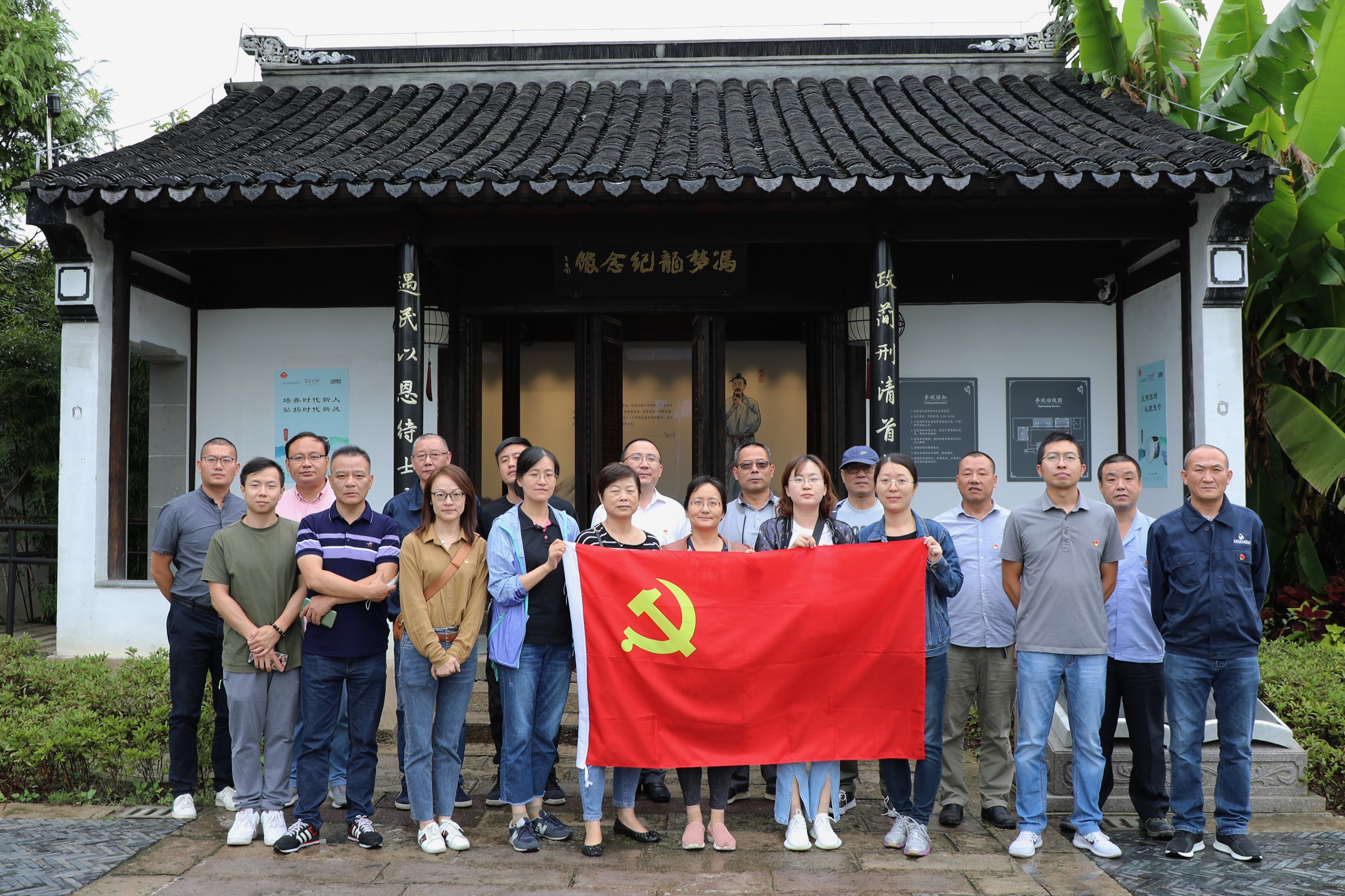 隨后全體人員驅車來到馮夢龍紀念村。在講解員的帶領下,黨員們先后參觀了馮夢龍故居、紀念館、書院和四知堂等多個場館,多方面了解馮夢龍的人生軌跡以及廉政勤政、親民愛民的事跡。參觀中,黨員們還通過實景互動屏聽取了千里之外的導游現(xiàn)場講述戴清亭與東壩的故事。馮夢龍一生為民、務實、勤廉的形象和“勤、公、實、廉”的為官之道令大家深受觸動,他所秉持的“濟世為民,兩袖清風”的執(zhí)政理念,不僅造福一方百姓,更豎起勤政廉潔、為民務實的精神標桿。