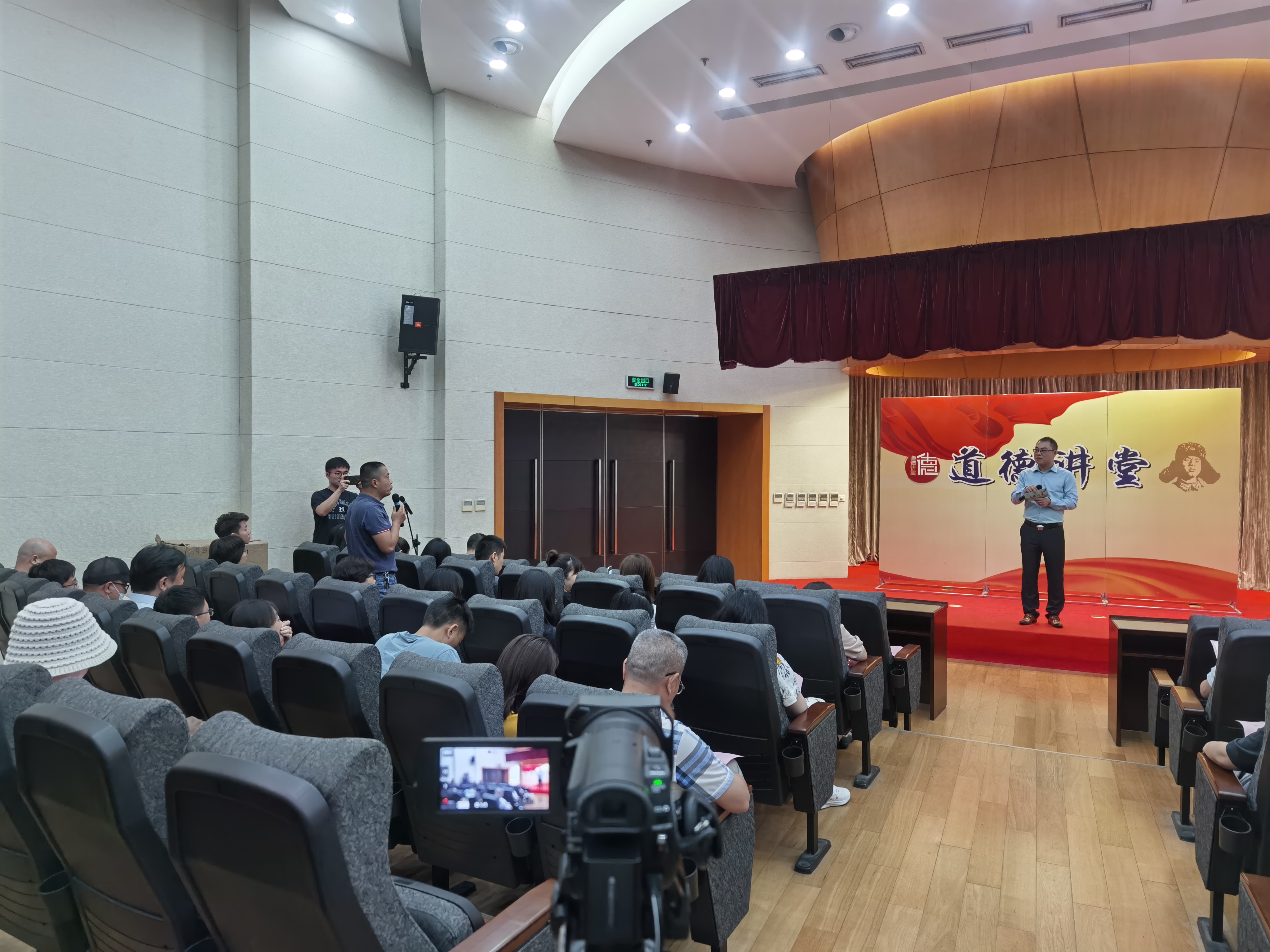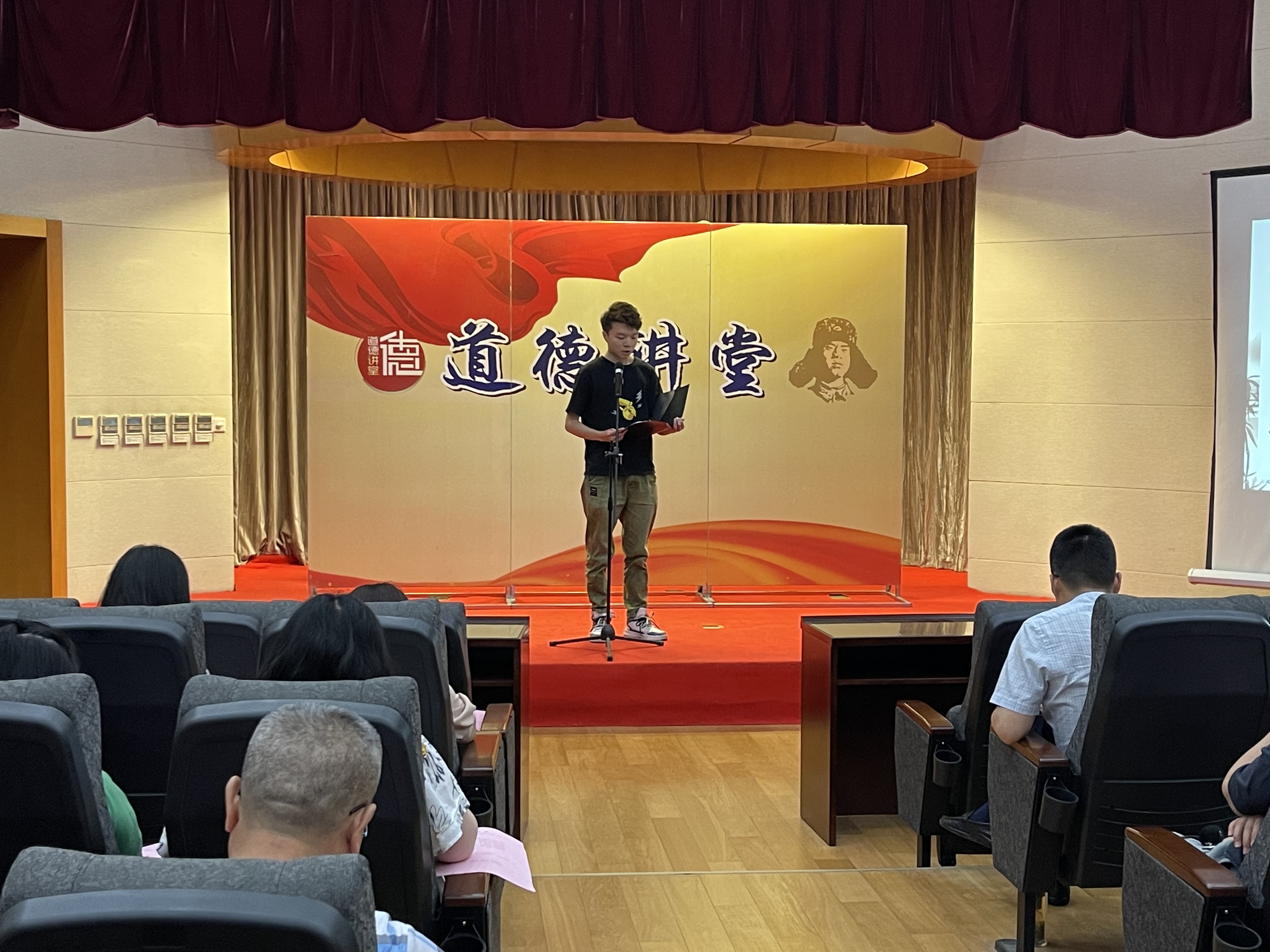 本期道德講堂引證據(jù)點、傳古頌今,通過“自我反省、唱歌曲、學模范、誦經(jīng)典、談感悟、做承諾、送吉祥”七個環(huán)節(jié),或歌曲、或視頻、或誦讀,生動詮釋了從古至今敬業(yè)奉獻精神的代代相傳。一曲《國家》振奮人心;視頻故事《狼牙山五壯士》、《我的媽媽叫桂梅》以及誦讀故事《陳祥榕:清澈的愛,只為中國》,講述了從老一輩革命者到新時代中國人穿越時空界限的一個個感人的奉獻故事,他們默默付出,堅守崗位,讓大家感受到了他們精神的高度和厚度。隨后,主持人帶領(lǐng)大家一起誦讀經(jīng)典并共同作出一份道德承諾。